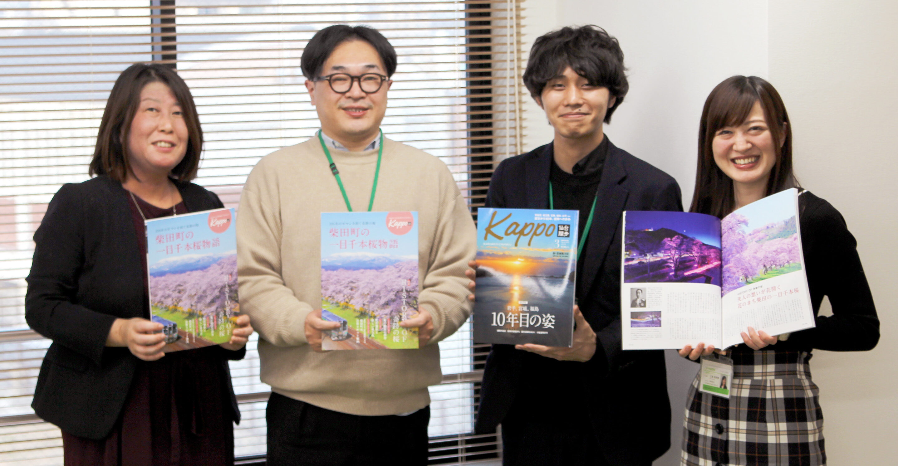 前職は東京で雑誌を中心としたフリーの編集者をしておりまして、旅が伴う企画も多く手掛け、地方へ取材にいくこともよくありました。今回の一目千本桜に関しては、Kappo掲載用のページ構成・取材・原稿を一部書いているのと、冊子の制作に携わらせていただき、広美さんと一緒に柴田町を訪ね、町の桜の歴史など、関係者にお話しを伺いました。