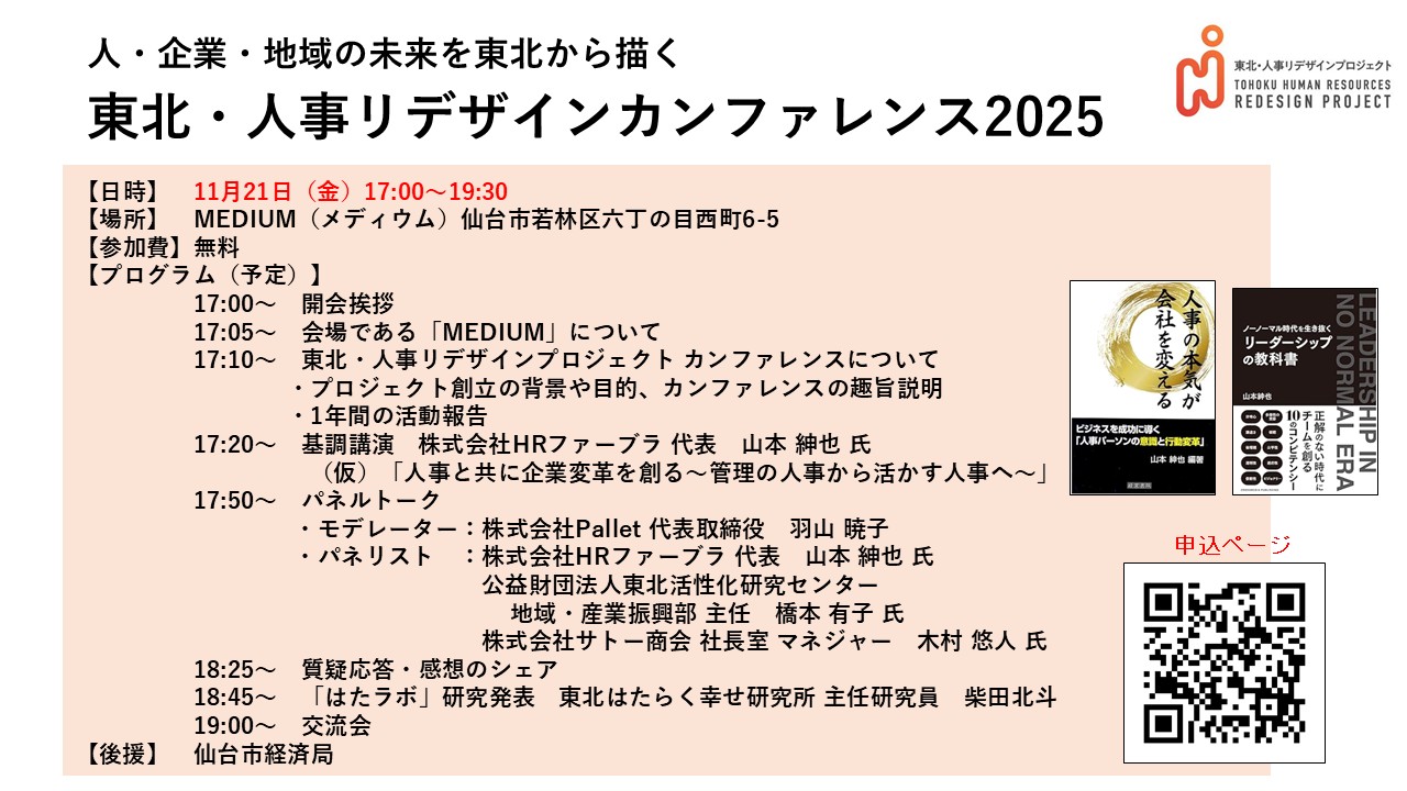 「人・企業・地域の未来を東北から描く 東北・人事リデザインカンファレンス2025」を11/21に開催します