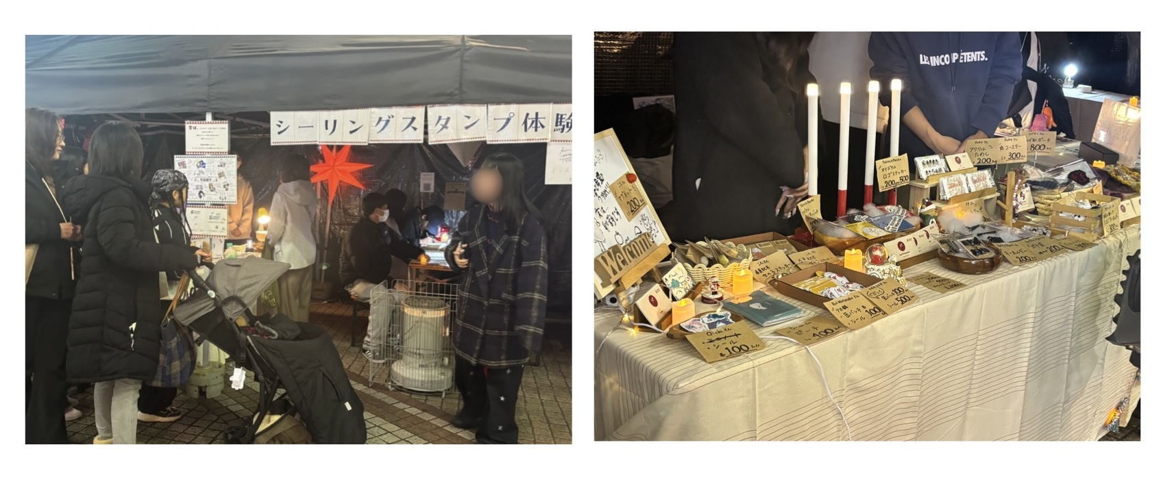 今回の出店では、東北工業大学の学生が作るハンドメイド作品の販売とシーリングスタンプのワークショップを実施しました。